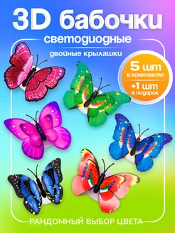Бабочки светящиеся 3D двойные крылышки 2 вид 5 шт
