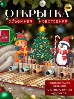 Открытка 3D объемная С Новым годом сюрприз для денег