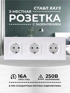 Розетка тройная белая с заземлением