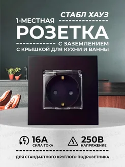 Розетка черная для ванны и кухни с защитной крышкой