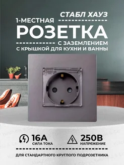 Розетка серая для ванны и кухни с защитной крышкой