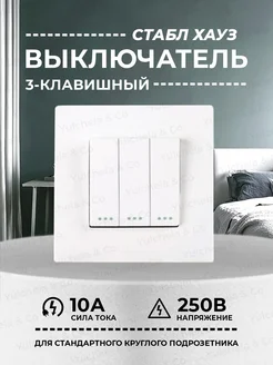 Выключатель трехклавишный белый пластик без подсветки