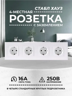 Розетка белая четырехпостовая со шторками и заземлением