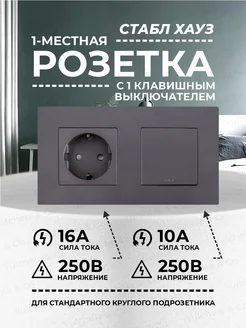 Одинарный серый выключатель без подсветки с розеткой