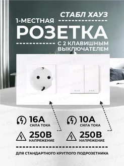Двойной белый выключатель без подсветки с розеткой