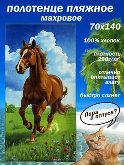 Полотенце махровое 70х140 пляжное Красная лошадь