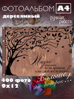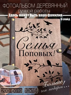 Фотоальбом большой кольцевой из дерева и кожи семья
