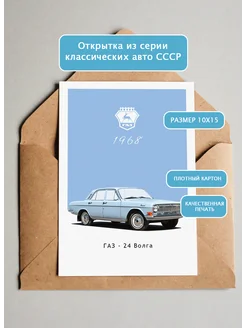 Открытка ГАЗ 24 Волга ретро авто подарок день рождения
