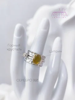 Кольцо-механизм с цитрином кабошон и горным хрусталём