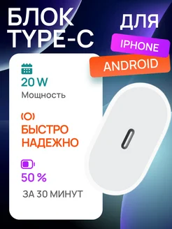 Блок питания для iPhone и Android Type-C 20W быстрая зарядка