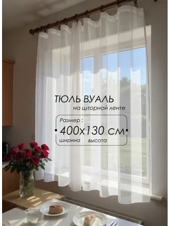 Тюль короткий 400х130 см для спальни на кухню балкон