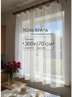 Тюль короткий 300х170 см для спальни на кухню балкон