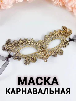 Маска карнавальная венецианская кружевная новогодняя золотая