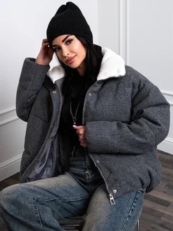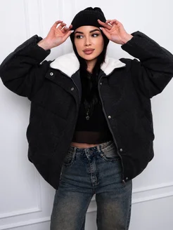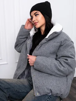 Куртка с капюшоном барашки удлиненная y2k