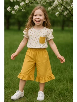 Костюм для девочки кофта из муслина и шорты с рюшами