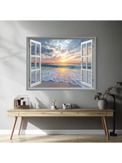 Картина большая Окно, вид из окна, закат в море, 80*100 см