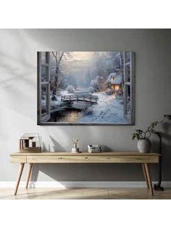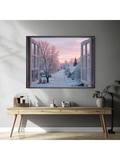 Картина горизонтальная Вид из окна, зимний пейзаж, 60*80 см