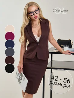 Костюм жилет с юбкой деловой