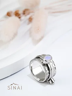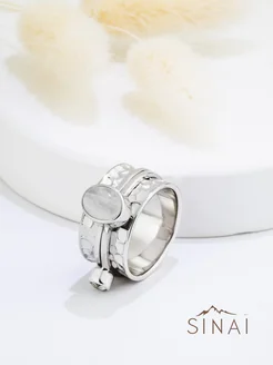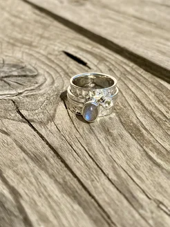 Кольцо механизм с лабрадоритом и бесцветным топазом серебро