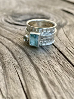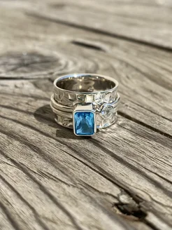 Кольцо механизм с голубым и бесцветным топазом серебро 925