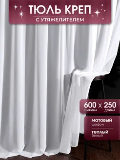 Тюль вуаль креп 600х250, тёплый белый