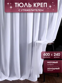 Тюль вуаль креп 600х240, холодный белый