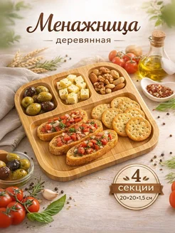 Менажница деревянная 4 секции, 20×20×1,5 см