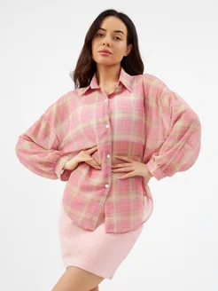 Рубашка в клетку летняя оверсайз прозрачная