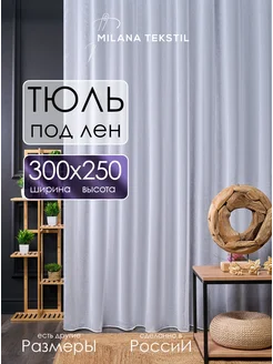 Тюль под лен 300х250 с утяжелителем в гостиную белая