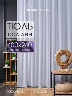 Тюль под лен 400х240 с утяжелителем в гостиную белая
