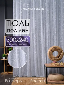 Тюль в гостиную 300х240 под лен с утяжелителем и рисунком