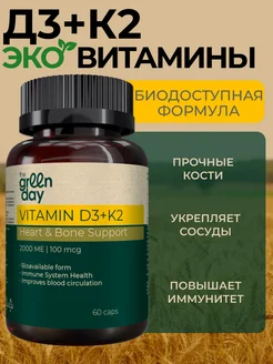 Витамин Д3 + К2, для костей, сосудов и иммунитета, 60 капсул