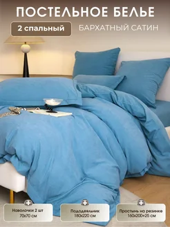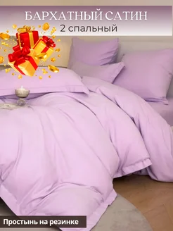 Постельное белье Сатин Бархат 2 спальный простынь на резинке
