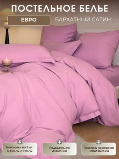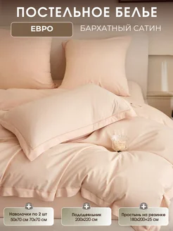 Постельное белье Сатин Бархат Евро простынь на резинке