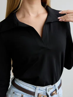 Лонгслив женский с V вырезом. Поло с длинным рукавом