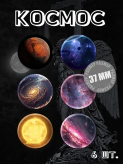 Значки на рюкзак космос 37 мм 6 шт