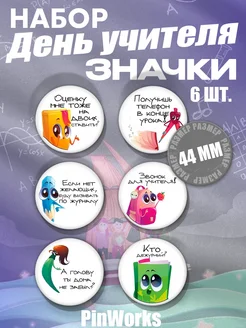 Значки ко дню учителя 44 мм 6 шт