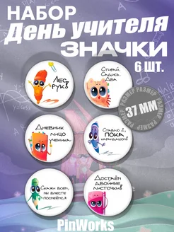 Значки ко дню учителя 37 мм 6 шт
