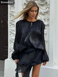 Рубашка с пышными рукавами + костюм с длинной юбкой