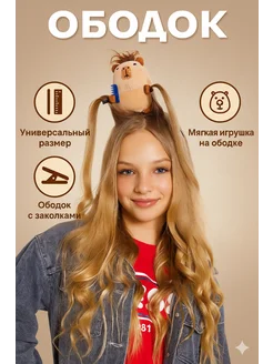 Ободок капибара для волос с мягкой игрушкой и заколками