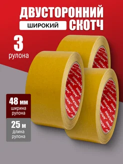 Скотч двусторонний ПП широкий 48мм х 25м - 3 шт