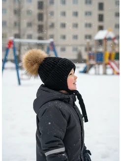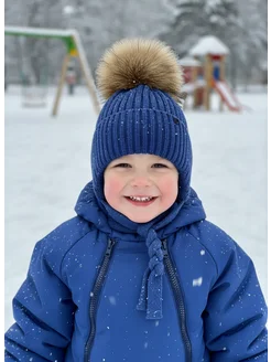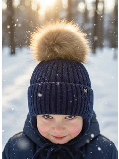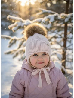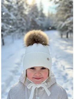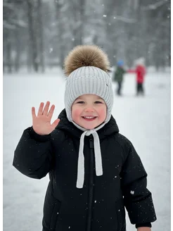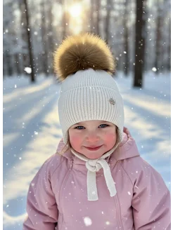 Шапка детская зимняя с натуральным помпоном