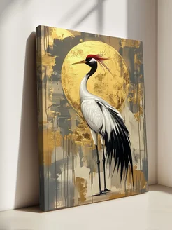 Картина интерьерная на стену "Журавль золотистый фон" 80x110