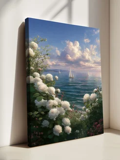 Картина для интерьера "Море и розы" 80x110