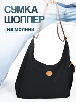 Шоппер женский сумка черная тканевая на молнии вместительная