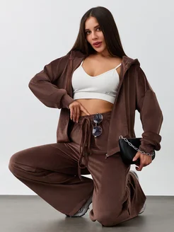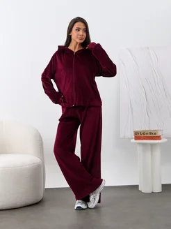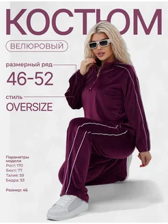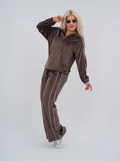 Костюм велюровый спортивный с капюшоном двойка оверсайз
