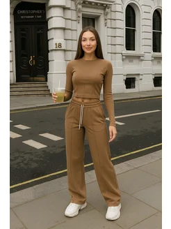 Спортивный костюм осенний с широкими брюками повседневный