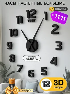 Часы настенные большие интерьерные с цифрами для кухни 3d
