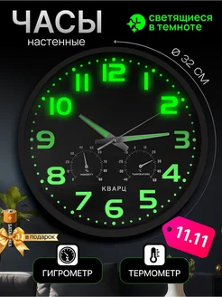 Настенные часы бесшумные светящиеся в темноте 32 см