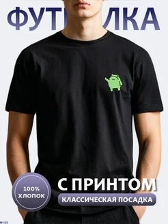 Футболка черная с принтом Лягушка мем факт
